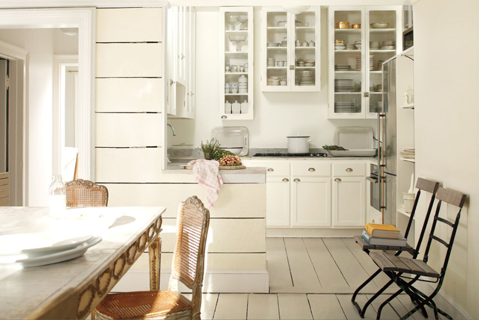 In my opinion, while using a bright white can create a crispy clean look, it's also tooooooooo darn bright! White trim provides a lot of contrast, but sometimes it's just too much, and not easy on the eye. Instead, use a white formulation that contains a little bit of umber pigment, it will still look nice and fresh, but not harsh.